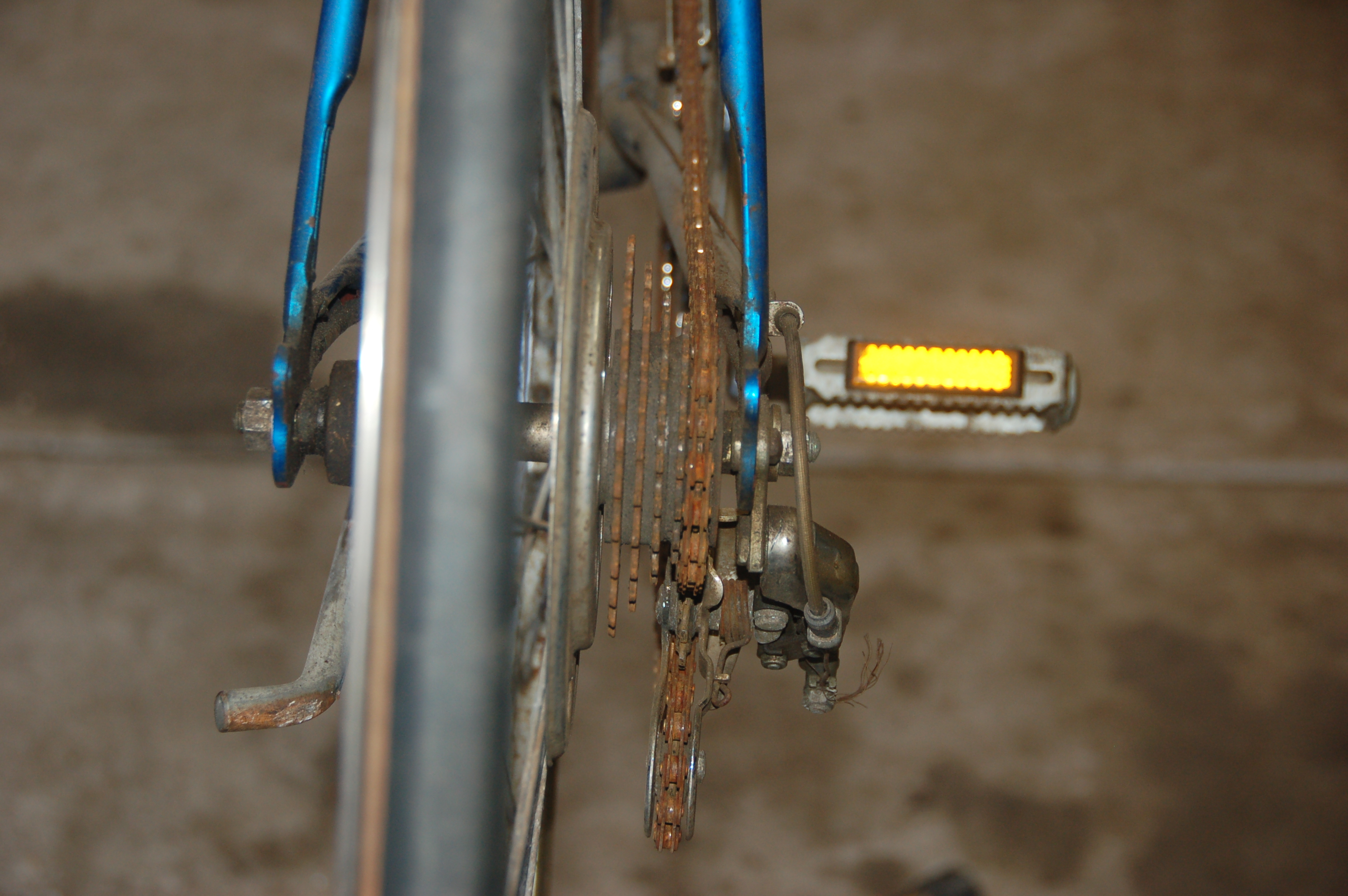 Rusty chain, bent derailleur.